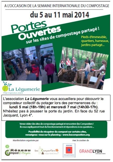 Du 5 au 11 mai l'opération "semaine internationale du compostage" sera l'occasion pour nous comme pour d'autres lieux de compostages collectifs d'ouvrir nos portes aux personnes qui veulent en savoir plus.